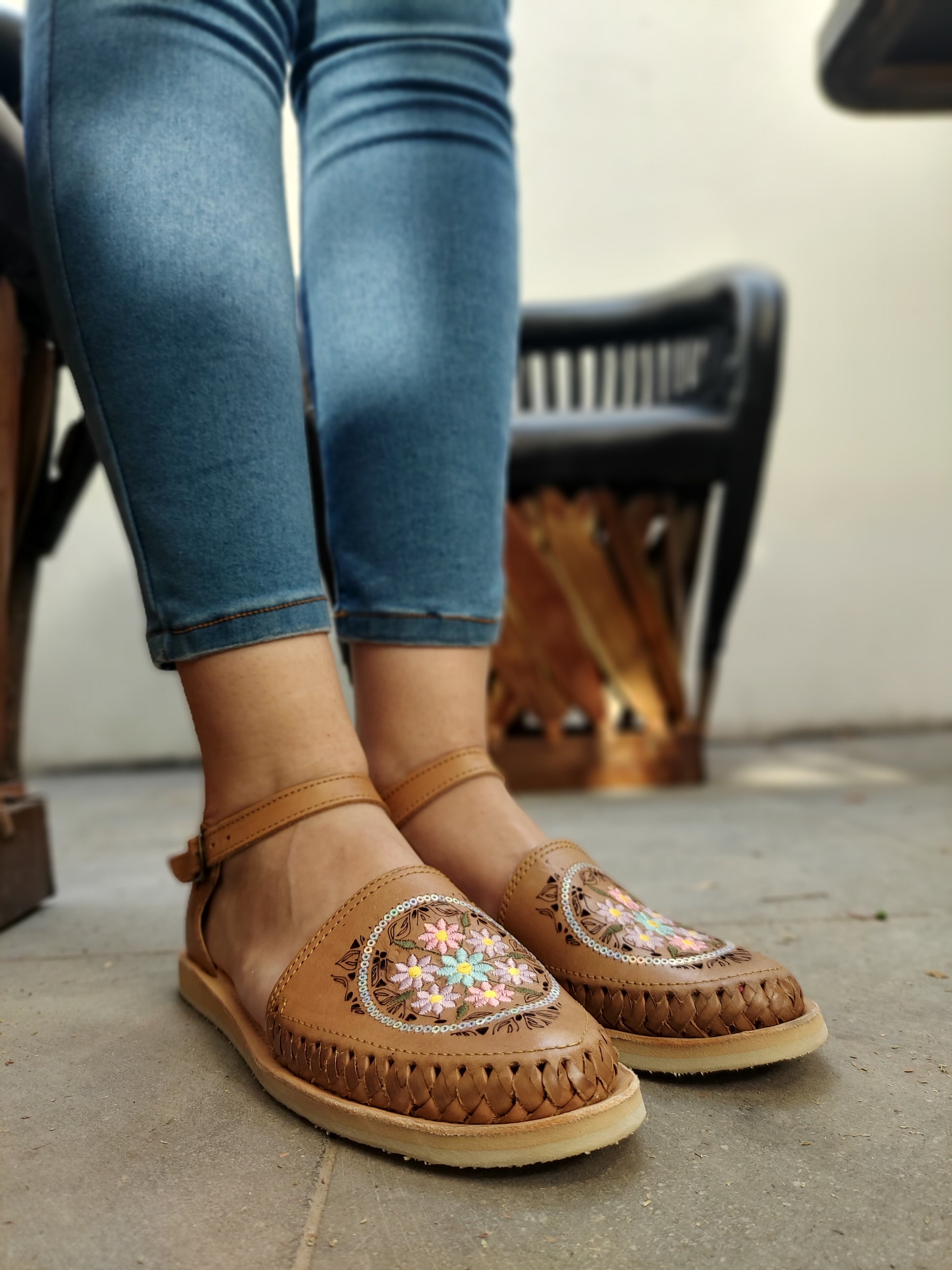 Alpargata 100% piel elaborada mano, con plantilla de vaqueta y suela de crepe original con asuela antiderrapente, bordado y lentuejuela hechos en méxico, tira ajustable para cualquier tipo de grosor de pie