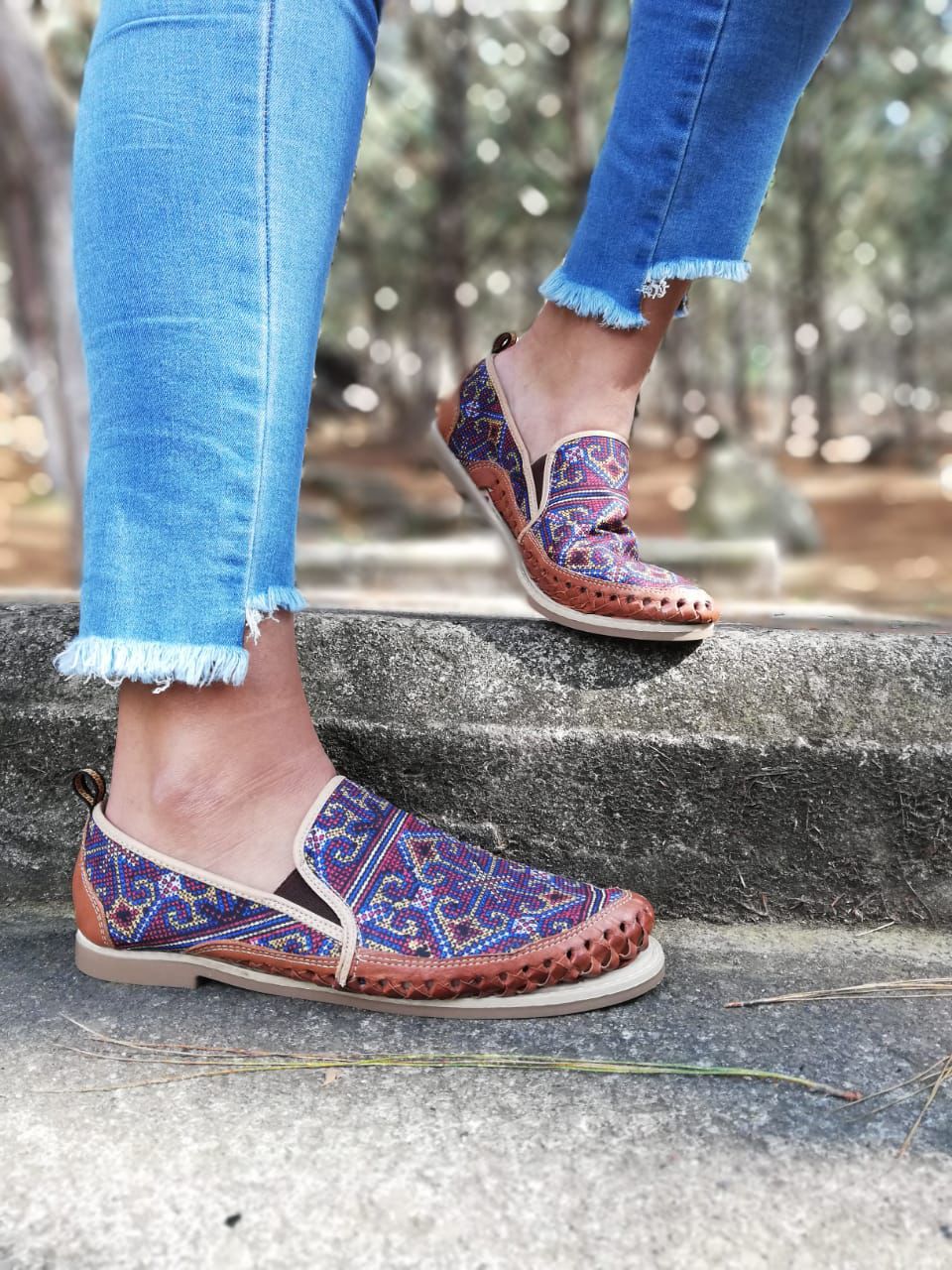 -Totalmente piel interior, Forro exterior añadido de tela, aparente Bordado - Plantilla acolchonada de alto confort -Piel tejida en los costados