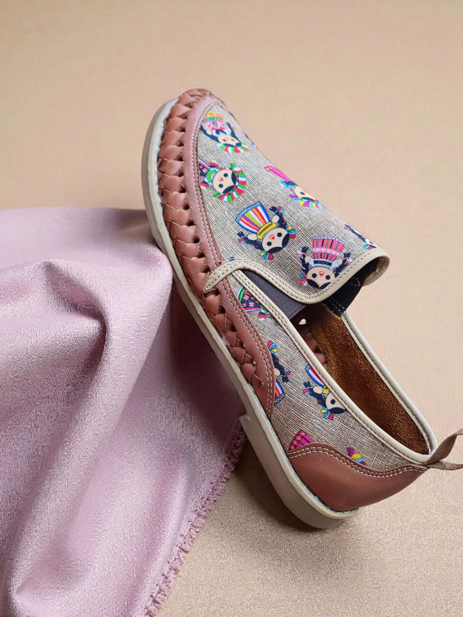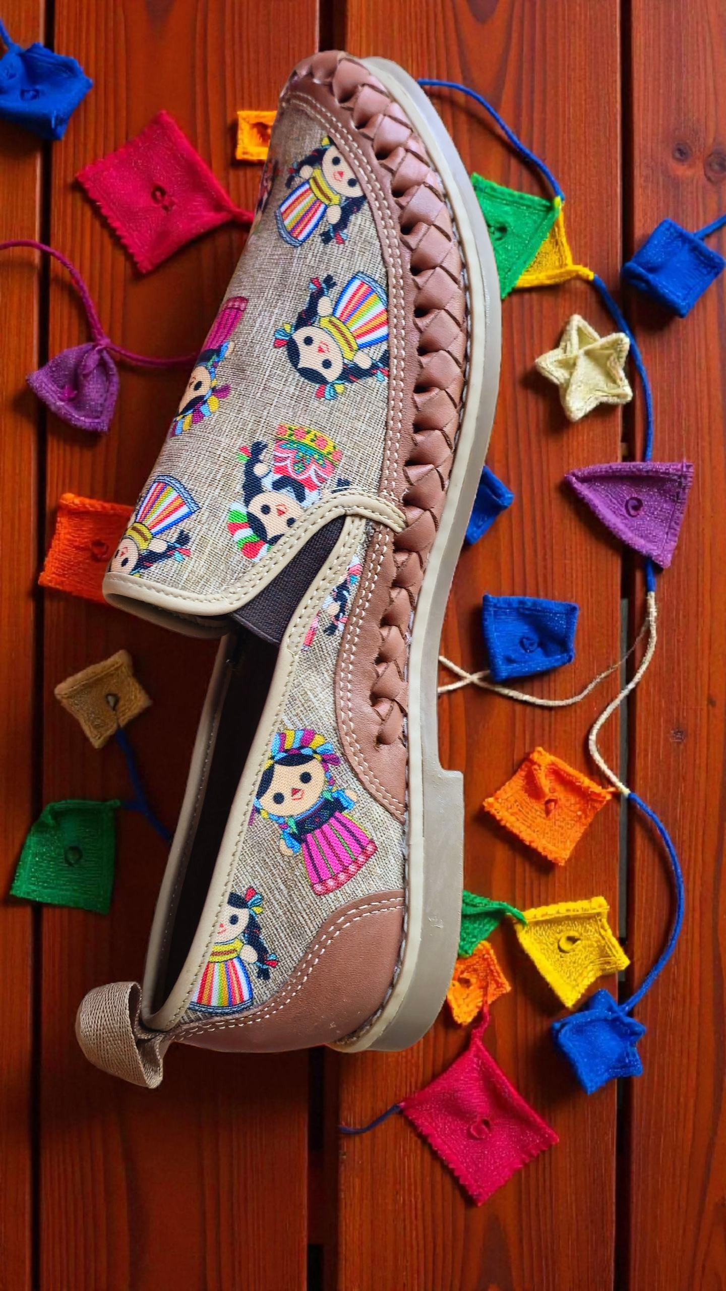 Huarache Artesanal Otomí (Lelê) de Piel Genuina | Diseño de Muñequitas Mexicanas | ARTESANAL RENVAL