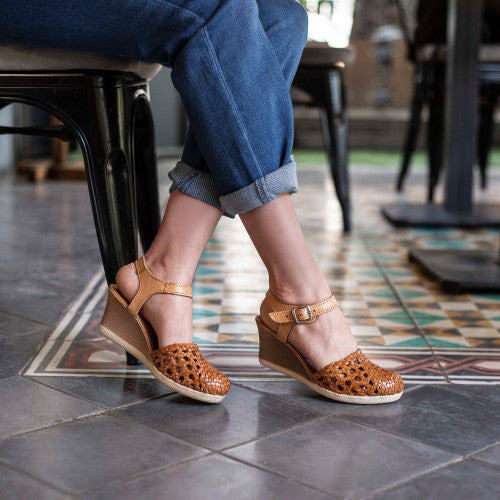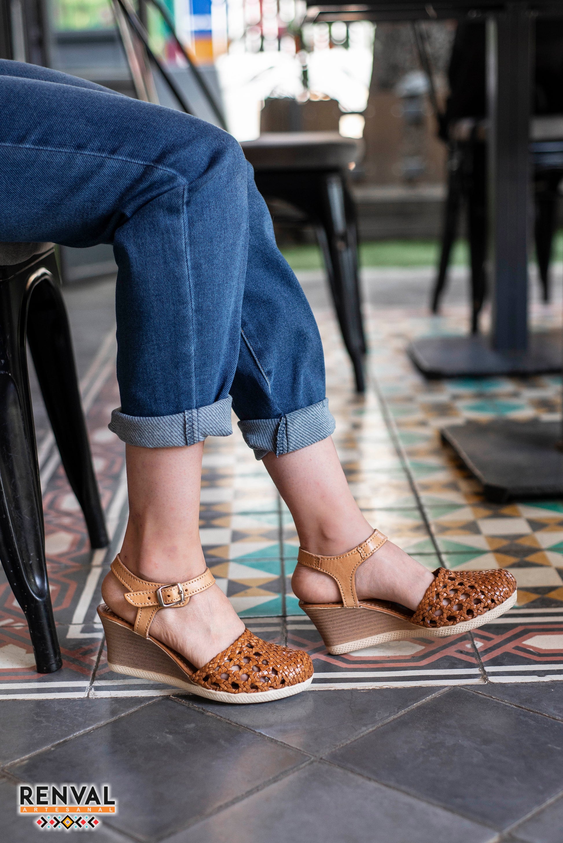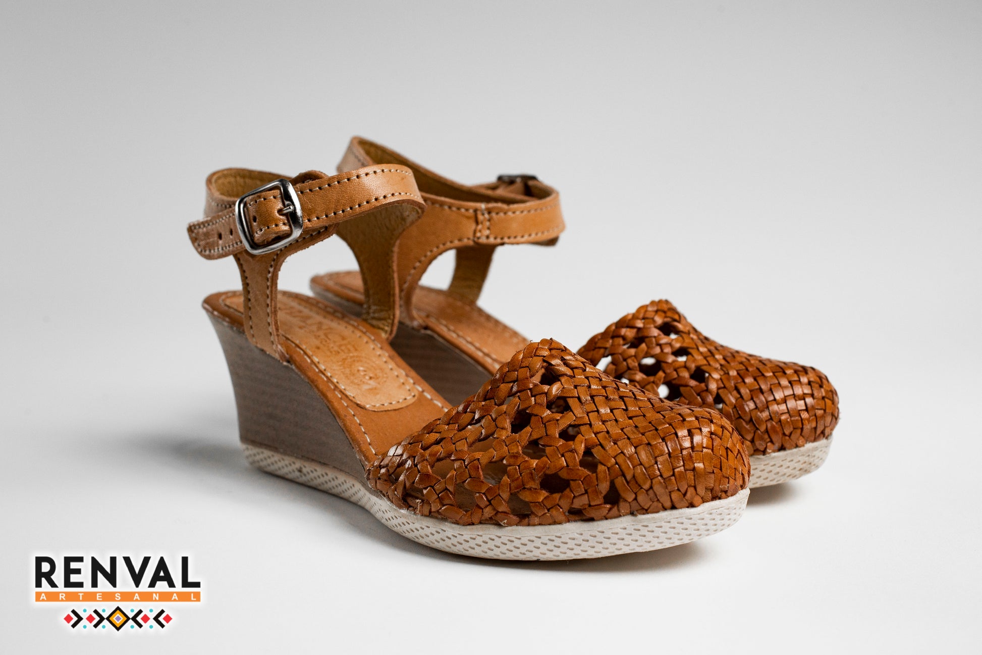 Plataforma corrida ultraligera de 6 cm, plantilla de piel alcholchonada, suela antiderrapante, hebilla ajustable, y trabajo del calzado en 100% piel trenzado a mano.