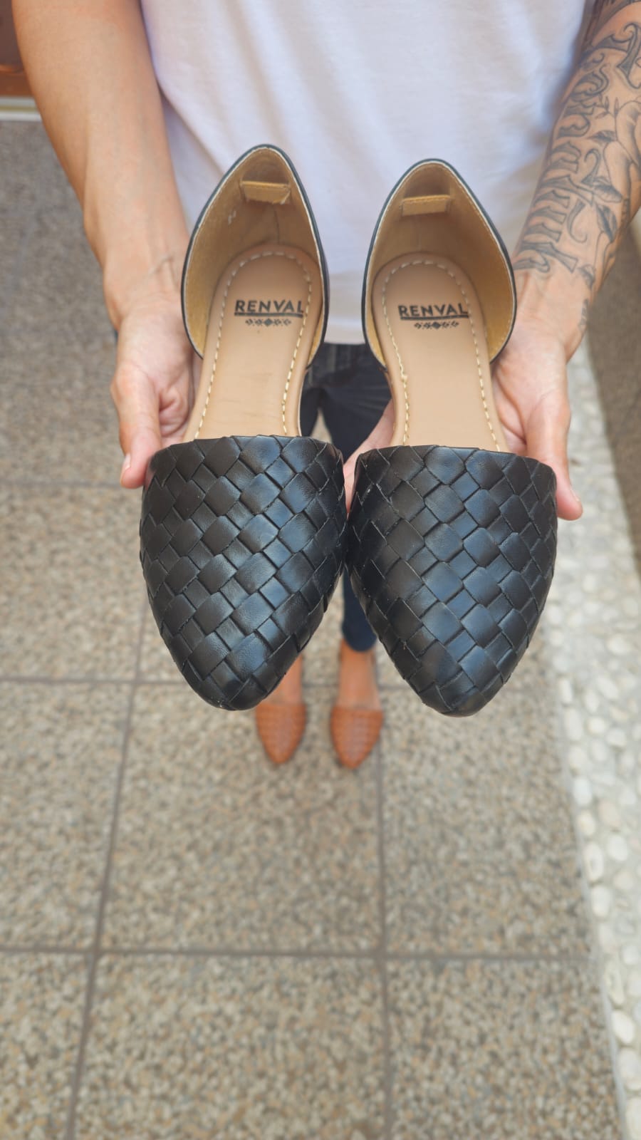 Eleva tu estilo con estos flats de piel genuina, diseñados con un acabado artesanal en tejido trenzado que aporta elegancia y comodidad en cada paso. Su diseño en punta estiliza el pie y combina fácilmente con cualquier outfit, desde lo casual hasta lo formal.