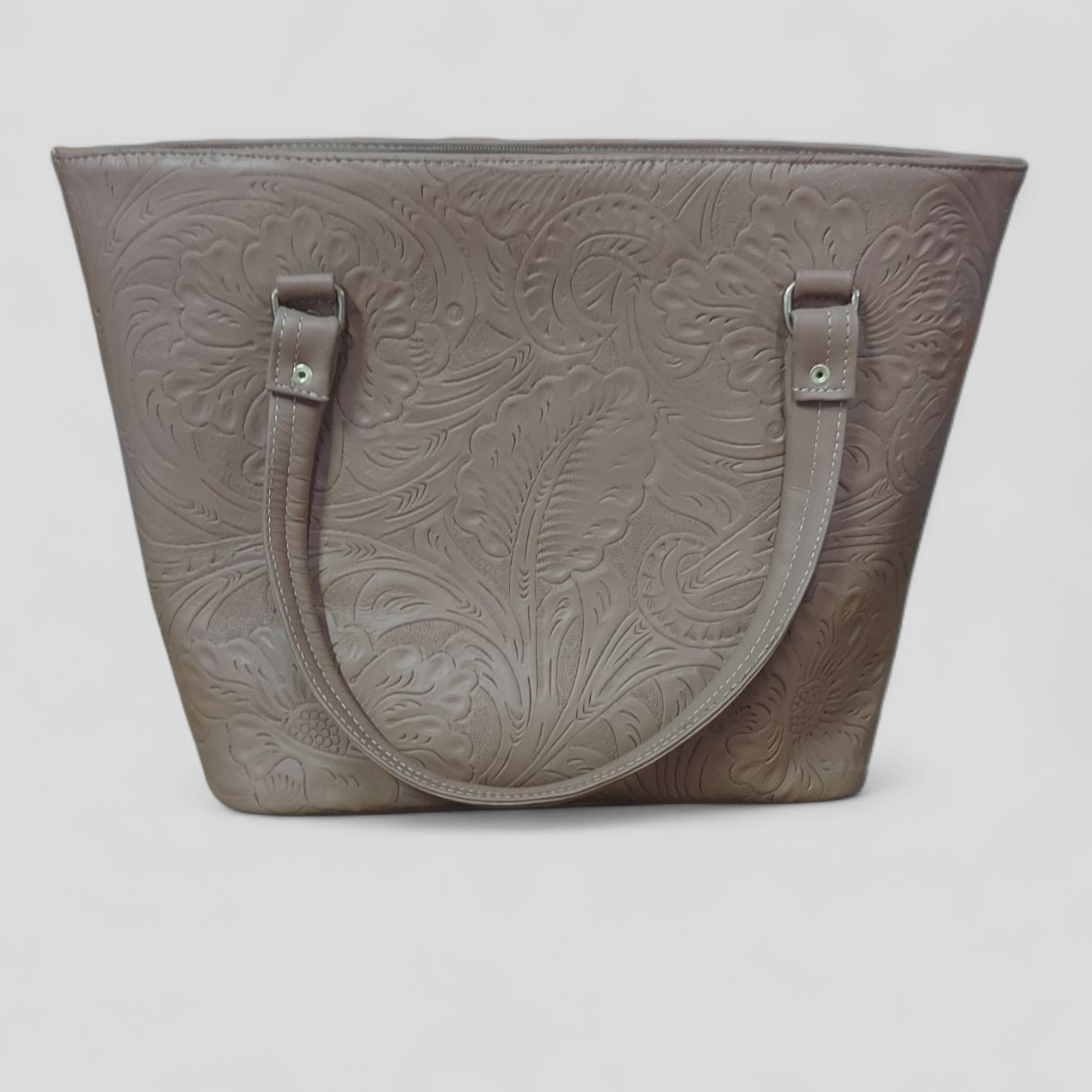 Combina elegancia y funcionalidad con esta bolsa artesanal de piel en tono taupe, ideal para mujeres prácticas que no quieren renunciar al estilo. Cada pieza está cuidadosamente elaborada a mano por artesanos mexicanos, con un grabado floral que resalta la belleza de lo hecho a mano.