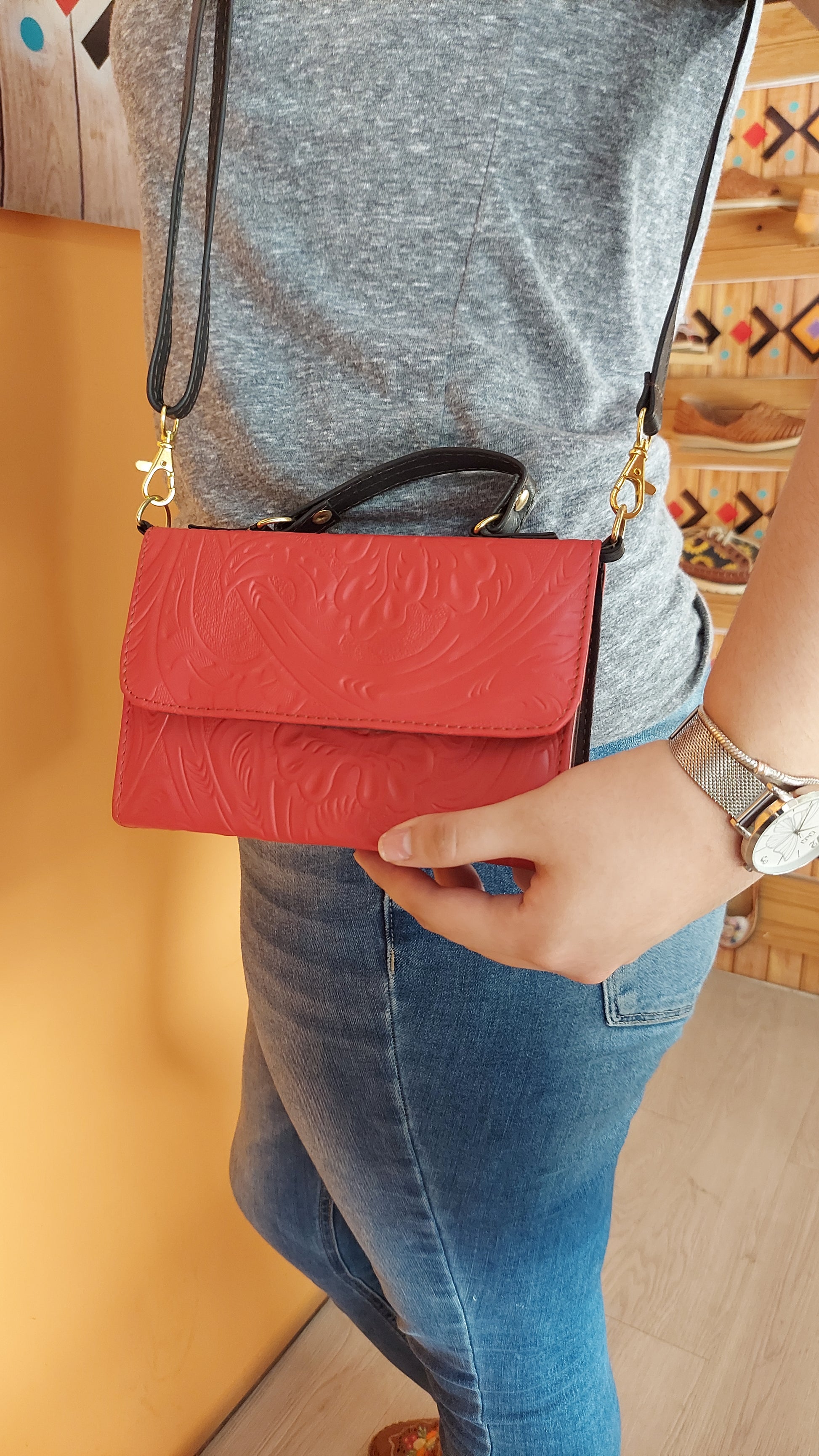 Luce un estilo auténtico y sofisticado con nuestra bolsa artesanal de piel, elaborada a mano por talentosos artesanos mexicanos. Su diseño compacto y práctico es perfecto para llevar lo esencial con elegancia. Con detalles grabados que resaltan la belleza del trabajo artesanal, esta pieza cuenta con correa ajustable y desmontable, así como una asa superior para mayor versatilidad. Ideal para usar cruzada o al hombro.
